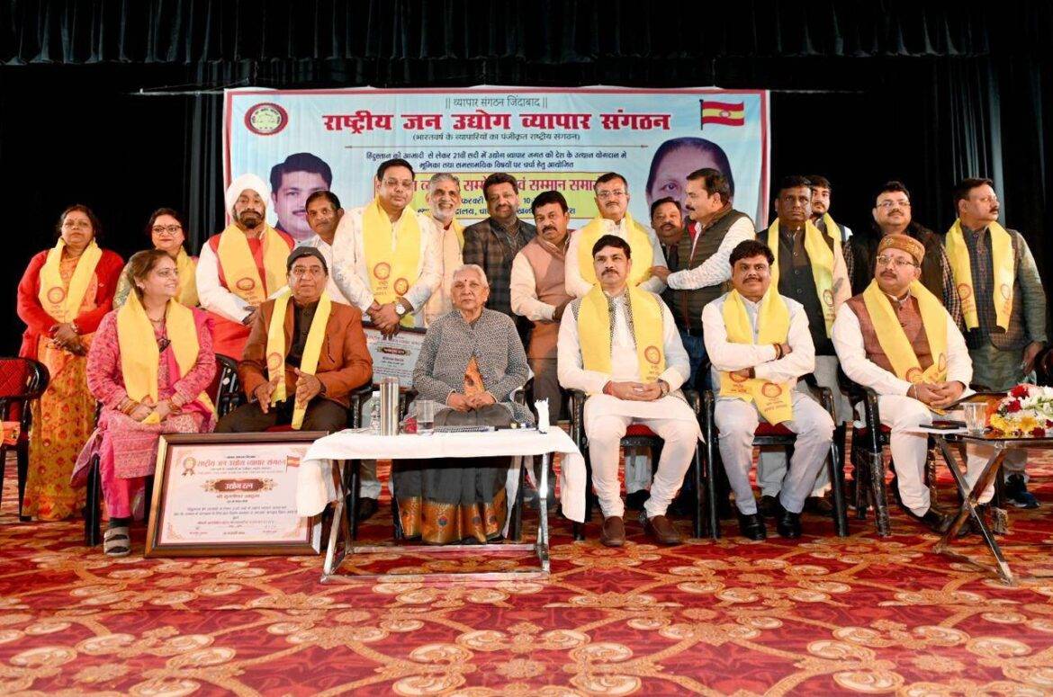 समारोह में राष्ट्रीय जन उद्योग व्यापार संगठन के राष्ट्रीय अध्यक्ष अमित गुप्ता ने अपने संबोधन में देश के 11 करोड़ खुदरा व्यापरियों की मूलभूत समस्याओं को महामहिम के सामने रखते हुए खुदरा व्यापार मंत्रालय के गठन की मांग रखी। उन्होंने काफी बड़ी संख्या में व्यापारियों की कर्जदारी का मामला उठाते हुए कहाकि इस समय सरकारी और प्राइवेट माध्यम से क्रेडिट कार्ड और पर्सनल लोन काफी संख्या में बांटे जा रहे हैं, इस पर सख्ती से अंकुश लगाने की जरुरत है क्योंकि इसके जाल में फंसकर व्यापारी आत्महत्या को मजबूर हो रहे हैं।