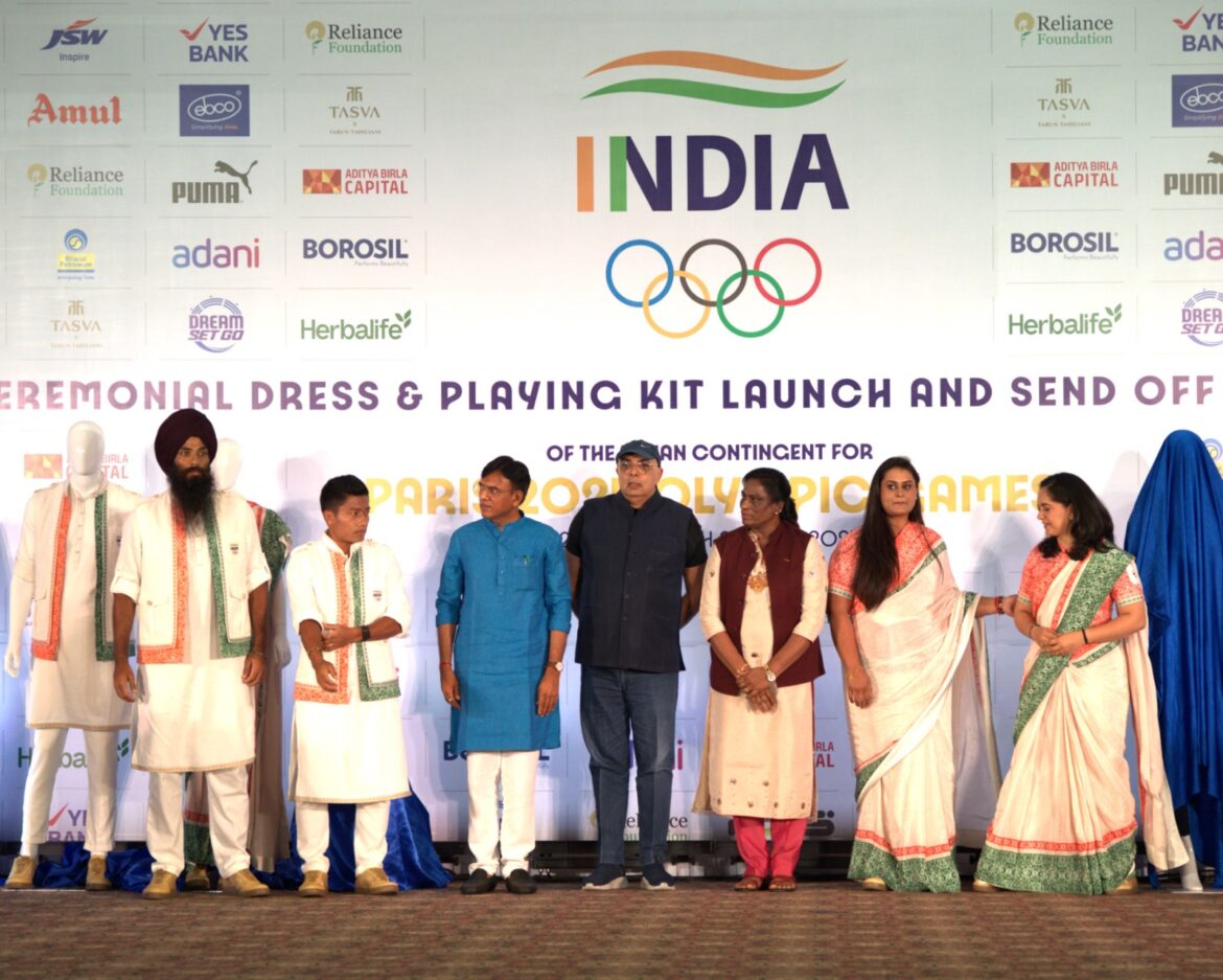 माननीय युवा मामले एवं खेल मंत्री डॉ. मनसुख मंडाविया ने पेरिस ओलम्पिक्‍स में टीम इंडिया के लिये तस्‍वा की सेरेमोनियल ड्रेस का अनावरण किया