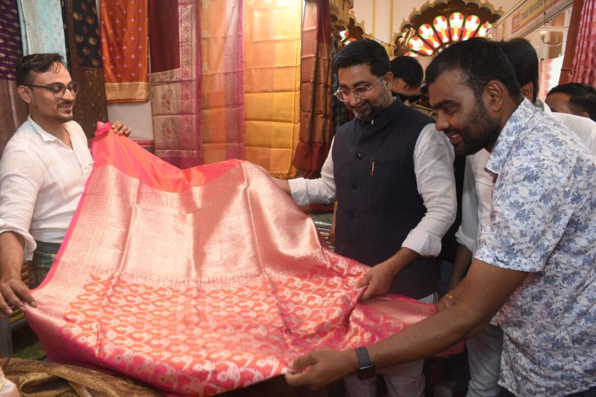 कैसरबाग बारादरी में आयोजित प्रदर्शनी का अवलोकन करते राज्य मंत्री ने कहा यह एक सराहनीय प्रयास है कि एक ही छत के नीचे प्रदेश के विभिन्न राज्यो के उत्पाद लखनऊ वासियों को किफायती दामों में उपलब्ध होते है समय-समय पर ऐसे आयोजनों को लेकर आने वाले प्रदर्शनी के आयोजक मानस आचार्या को बधाई भी दी। इस प्रदर्शनी मी विभिन्न राज्यो से आये बुनकरों से उत्पाद के बारे में जानकारी ली प्रदर्शनी में आये उत्पाद अपने आप मे अलग पहचान रखते है। जिसमे कि सिल्क साड़ी I सूट I ड्रेस मटीरियल I स्टोल | दुपट्टे कुर्ती I शुद्ध और संभावित सिल्क | टसर सिल्क I शांतिपुर सिल्क।