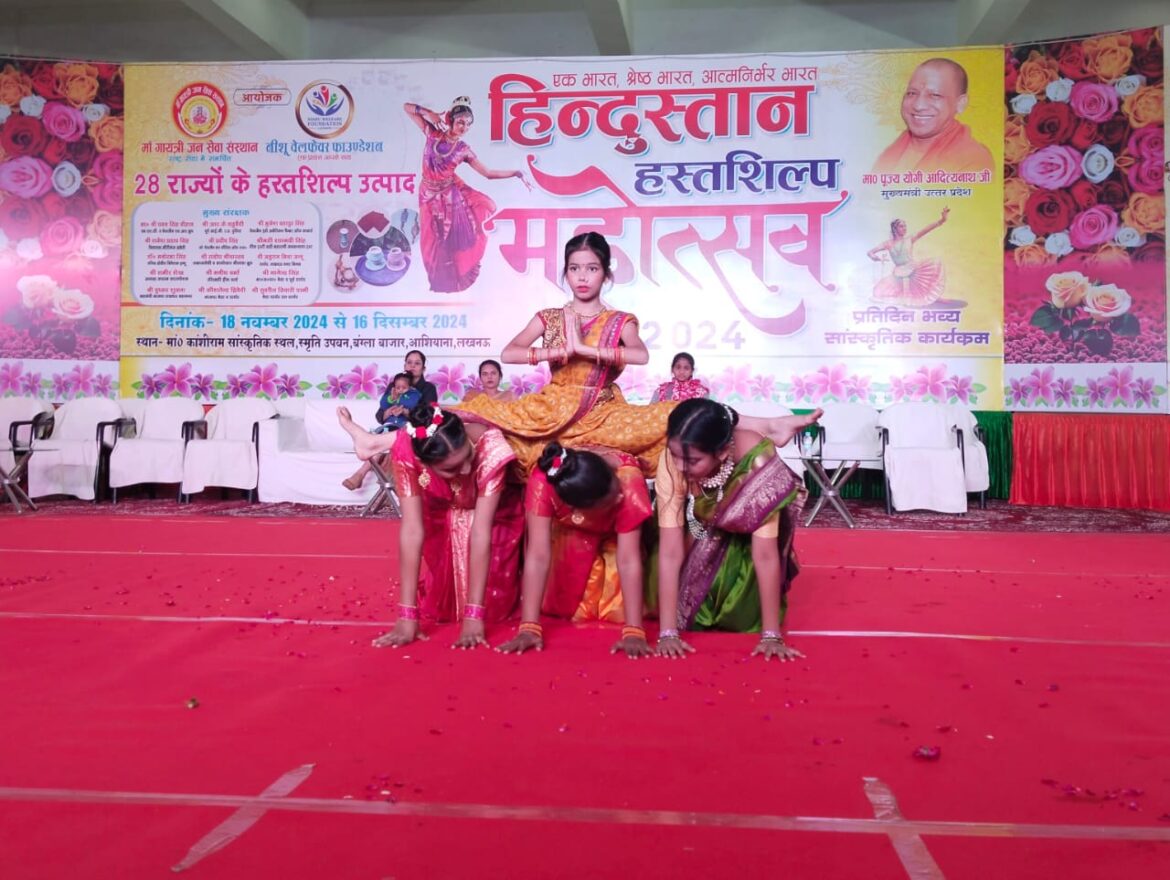 लखनऊ,समाचार10 India। आशियाना क्षेत्र में आयोजित माँ गायत्री जन सेवा संस्थान एवं नीशू वेलफेयर फाउंडेशन द्वारा इन दिनों चल रहे हिंदुस्तान हस्तशिल्प महोत्सव में रविवार शाम आयोजक अरुण प्रताप सिंह व गुंजन वर्मा द्वारा सांस्कृतिक संध्या का शुभारम्भ द्वीप प्रज्ज्वलन कर किया गया। मंच से सांस्कृतिक संध्या कार्यक्रम की शुरुआत गणेश वंदना से आरंभ हुई, स्टार मेकर्स एकेडमी के बच्चों के द्वारा डांस की प्रतियोगिता का आयोजन किया गया। धीरेन्द्र द्वारा सोलो सिंगिंग की प्रस्तुति से उपस्थित लोगो का दिल जीत लिया।