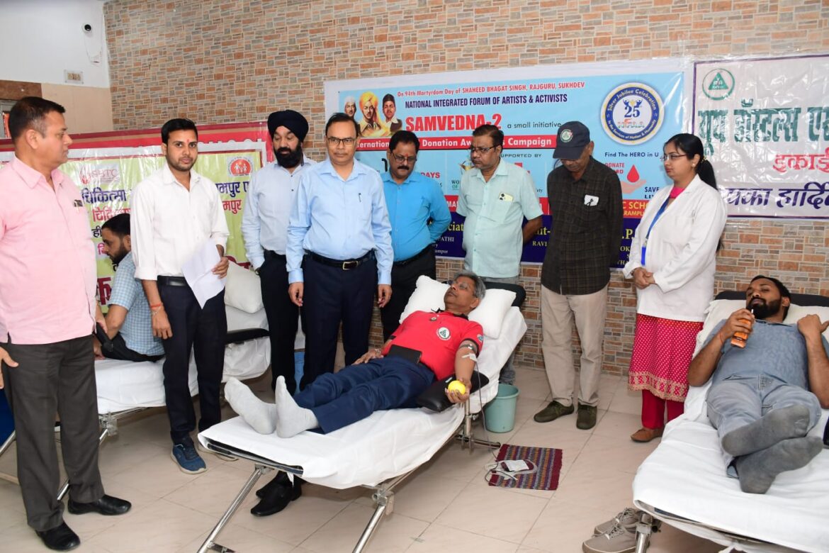 बलरामपुर,समाचार10 India। 6 बार गिनीज़ बुक ऑफ़ वर्ड रिकॉर्ड प्राप्त कर चुकी सामाजिक संस्था नेशनल इंटीग्रेटेड फोरम ऑफ़ आर्टिस्ट्स एन्ड एक्टिविस्ट्स (निफा) एवं यूथ हॉस्टल्स एसोसिएशन ऑफ़ इंडिया इकाई बलरामपुर के संयुक्त तत्वावधान में जनपद के प्रतिष्ठित शारदा पब्लिक स्कूल में बलिदानी भगत सिंह, राजगुरु एवं सुखदेव के 94 वें बलिदान दिवस पर एक वृहद स्वैच्छिक रक्तदान शिविर का आयोजन किया गया। शिविर में रक्तदानियों ने बढ़ चढ़ कर प्रतिभाग किया। सामाजिक संस्था निफा द्वारा संवेदना-2 अभियान के तहत पूरे विश्व में 2400 शिविर के माध्यम से डेढ़ लाख यूनिट रक्त एकत्र करने का लक्ष्य रखा गया है। इसी अभियान के तहत जनपद में भी रक्तदान शिविर का आयोजन किया गया, जिससे जरूरतमंदो और गंभीर रोग से पीड़ित मरीजों को समय पर रक्त उपलब्ध कराया जा सके।
