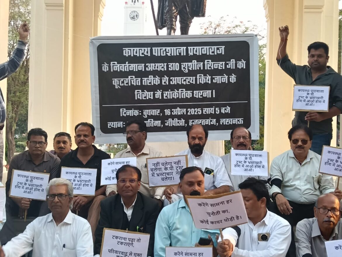लखनऊ,समाचार10 India। कायस्थ्य पाठशाला के.पी. ट्रस्ट प्रयागराज के ट्रस्टियों एवं आम कायस्थ समाज के लोगों द्वारा आज गांधी प्रतिमा, जी.पी.ओ. पार्क, हजरतगंज में शांतिपूर्वक सांकेतिक धरना दिया गया। धरना कायस्थ्य पाठशाला प्रयागराज के निवर्तमान अध्यक्ष डॉ. सुशील कुमार सिन्हा के समर्थन में आयोजित किया गया, जिनको हाल ही में विवादित रूप से अध्यक्ष पद से हटाए जाने का मामला सामने आया है।