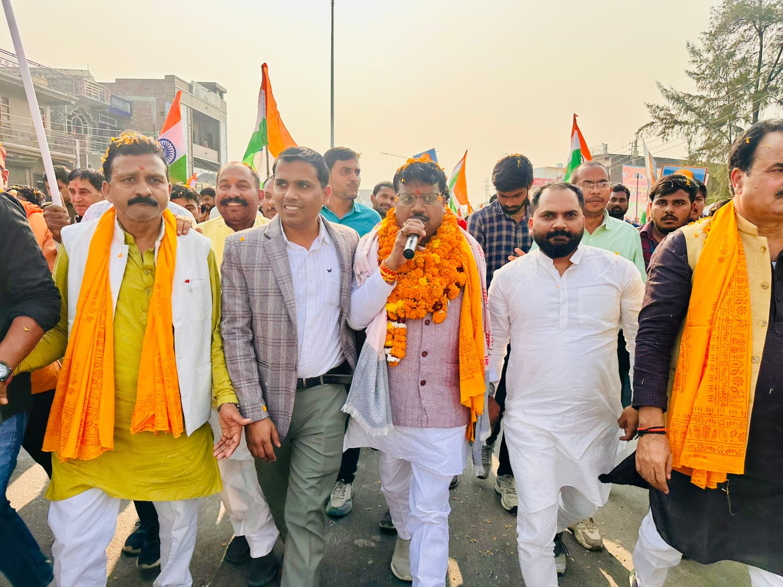 मिल्कीपुर,(अयोध्या)-समाचार10 India। विधायक चन्द्रभानु पासवान के नेतृत्व में सरदार वल्लभभाई पटेल की 150वीं जयंती के अवसर पर इनायतनगर क्षेत्र में राष्ट्रीय एकता और अखंडता का संदेश देते हुए 5 किमी लंबी भव्य पदयात्रा निकाली गई, जो मीठे गांव में विशाल जनसभा के साथ संपन्न हुई। कार्यक्रम में जनप्रतिनिधियों और भाजपा के वरिष्ठ नेताओं ने एकजुट भारत के निर्माता लौहपुरुष पटेल के योगदान को नमन किया।
