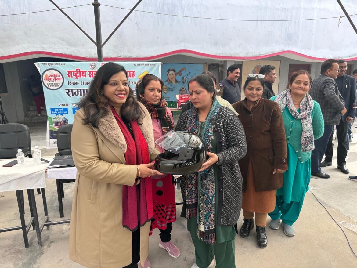 समापन समारोह में “दो-पहिया वाहन चालक हेलमेट लगाकर चलें” संदेश के प्रचार-प्रसार हेतु आयोजन में उपस्थित विभिन्न लोगों को हेलमेट वितरित किए गए तथा आरटीओ (प्रशासन) सुश्री रितु सिंह द्वारा सभी को सड़क सुरक्षा की शपथ दिलाई गई।