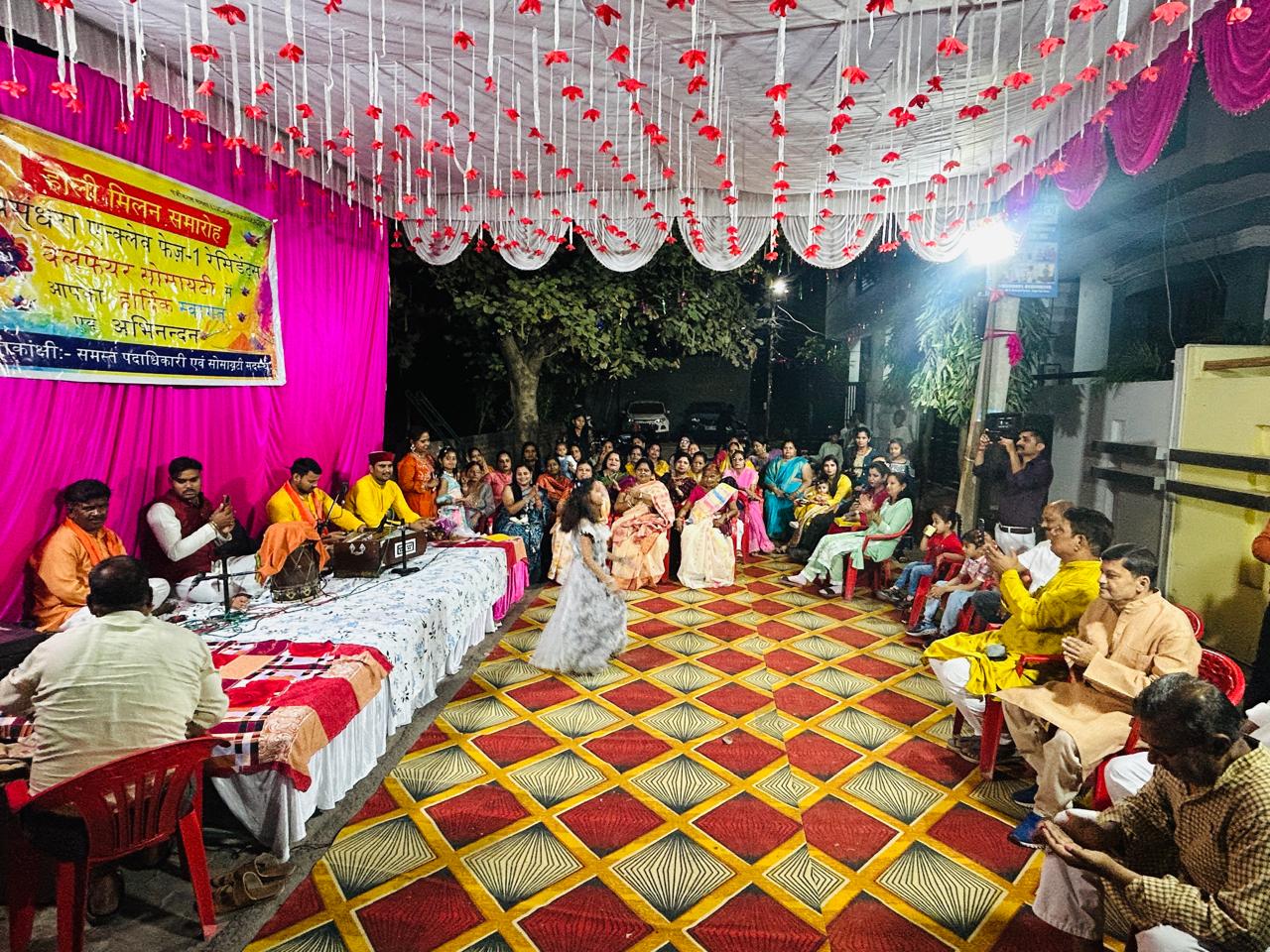 इस अवसर पर फूलो की होली के साथ ही फाग गान मंडली, महिलाओं एवं नन्हे मुन्ने बच्चो ने अपनी प्रस्तुति नृत्य होलीगीत एवं भक्ति गीत से दी निहारिका श्रीवास्तव एवं मनु श्रीवास्तव ने बच्चों के कार्यक्रम का संचालन किया।उपस्थित एवं प्रतिभागी जिसमें प्रमुख रूप से डॉ अलका सिंह ,गीता सैनी, रंजना श्रीवास्तव, नीलम राय, रीना राय, रोशनी सेठ, रोली गुप्ता, दीप्ति सैनी,सागरिका मिश्रा,नमिता मिश्रा, अमृता श्रीवास्तव,इशिता शुक्ला, विद्या वाजपेई, संजना वाजपेई,रेनू राय,कमलेश सेठ, सोनी सेठ, कुसुम द्विवेदी, नूतन श्रीवास्तव, प्रीति श्रीवास्तव, संध्या यादव, सीमा यादव, ममता गुप्ता, शीला गुप्ता, कविता सिंह, इमी श्रीवास्तव, सेतु सेठ, इत्यादि रही।