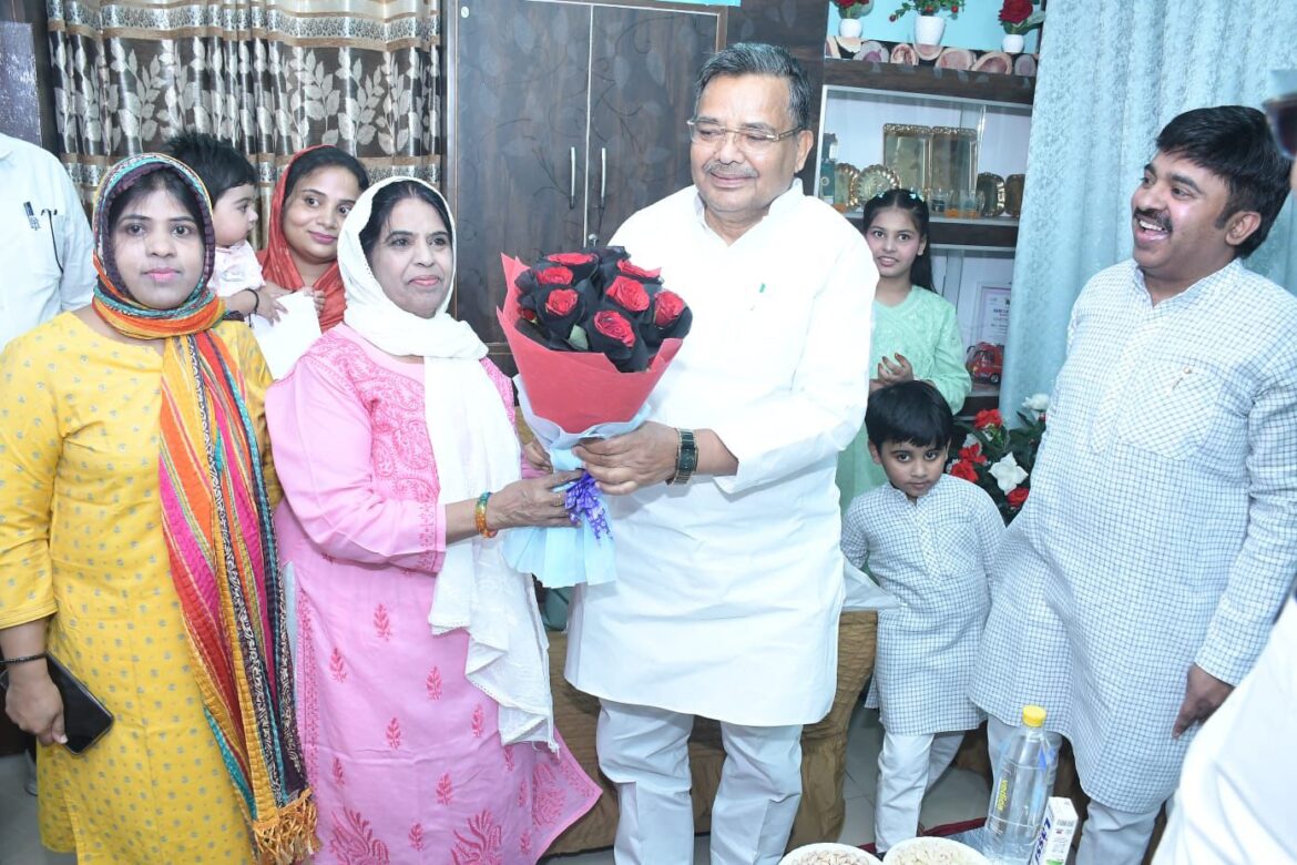 बुधवार की सुबह एमएसएमई मंत्री राकेश सचान बाराबंकी सुमेरगंज पहुंचे और परिवार से मुलाकात कर शुभकामनाएं दी। वहीं पर्यटन एवं संस्कृति मंत्री जयबीर सिंह भी शाहिद सिद्दीकी की आवास पर पहुंचे कैबिनेट मंत्री जयवीर सिंह ने भी ईद की बधाई देते हुए बच्ची के उज्जवल भविष्य की कामना की इस दौरान उन्होंने क्षेत्र के सम्मानित नागरिकों एवं पत्रकारों को अंग वस्त्र देकर सम्मानित भी किया मौके पर साहित्य के पिता अख्तर हुसैन भाई तारीक सिद्दीकी और डॉक्टर रमेश सिंह ने सभी अतिथियों का बुके एवं अंग वस्त्र भेंट कर स्वागत किया। वरिष्ठ पत्रकार शाही सिद्दीकी ने बताया कि मंत्रियों ने अपने व्यस्त कार्यक्रम के बावजूद समय निकालकर उनके आवास पर आयोजित कार्यक्रम में पहुंचकर जो स्नेह और सम्मान दिया वहां उनके लिए अत्यंत गर्व और खुशी की बात है । उन्होंने सभी अतिथियों का आभार व्यक्त किया ।