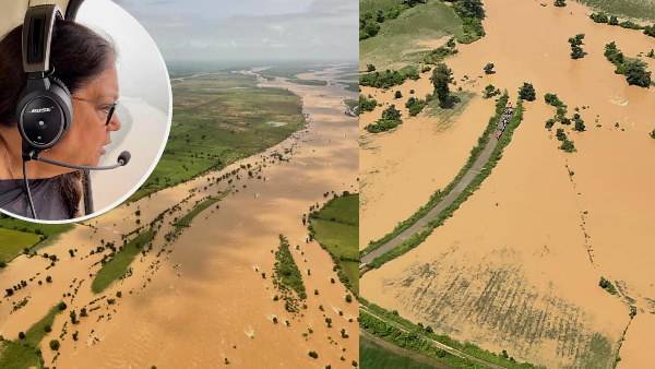 जयपुर, 24 अगस्त। चारों तरफ पानी ही पानी। फसलें बर्बाद। रास्ते बंद। सड़कें गायब। नदी किनारे पानी से घिरे गांव-ढाणियां। कुछ ऐसे ही नजर आया हाड़ौती क्षेत्र में जब राजस्थान की पूर्व सीएम वसुंधरा राजे सिंधिया ने बुधवार को बाढ़ प्रभावित